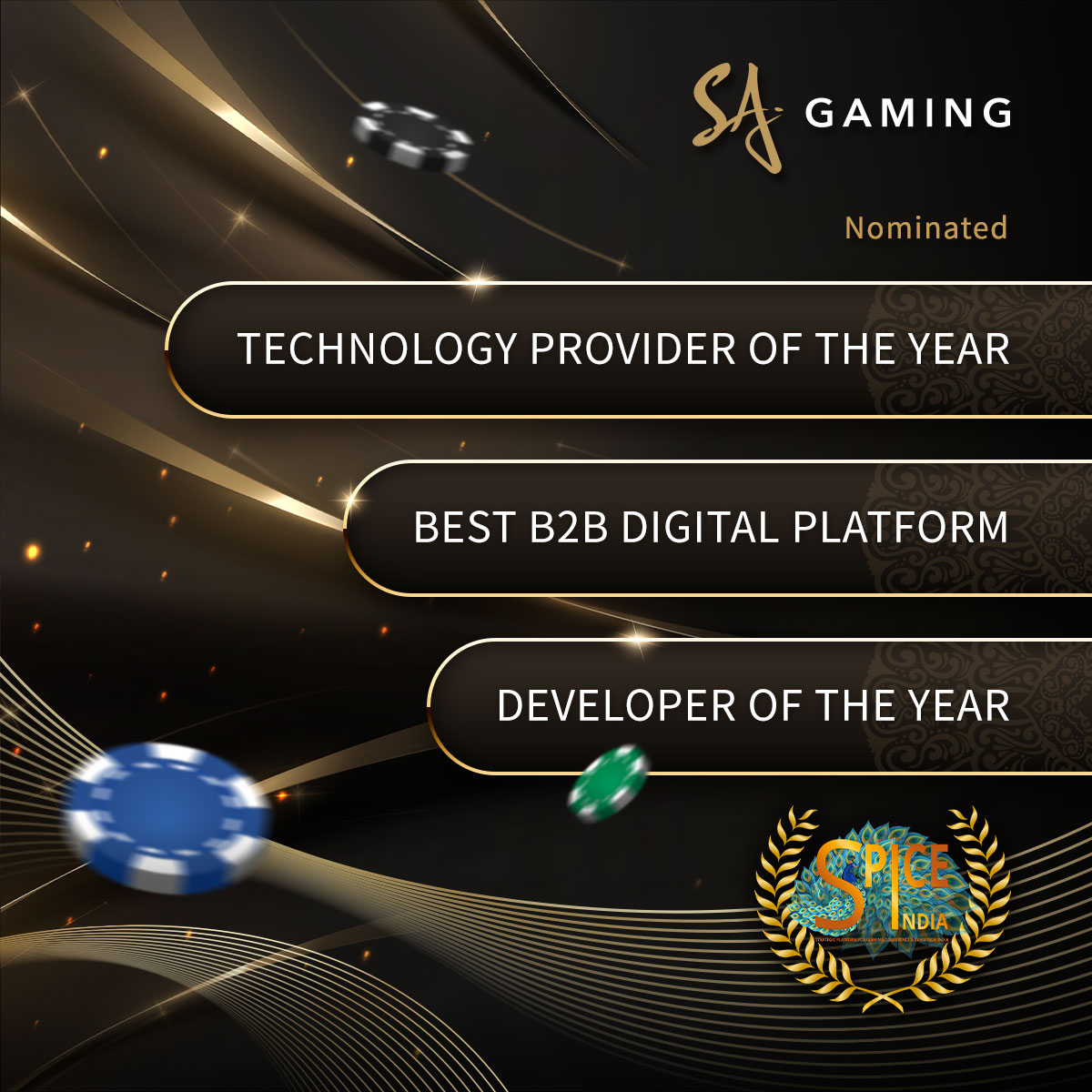 SA Gaming is a leading online entertainment platform provider in Asia. Making use of state-of-the-art technology, it offers a full spectrum of Live Games including Baccarat, Andar Bahar and many more. Licensed by Gaming Curacao, every product is developed by professionals with diligence, and comes with trustworthy support services. SA Gaming’s products are very popular among players around the world. Winner of the “Australia/Asia Focused Technology Supplier of the Year” at IGA, “Virtual Platform Provider” and “Best B2B Digital Platform” in SPiCE Awards, and many other awards, SA Gaming’s efforts and achievements are well recognised in the industry.